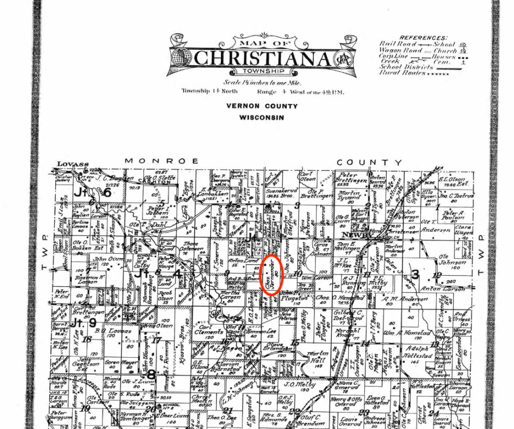 In 1898 Charlie married Josephine Opsahl. Shortly after the birth of their first son in 1899, the family moved to Moline, IL with a couple of Charlie’s siblings. In 1903 they moved back to Wisconsin and Charlie purchased some land in Christiana Township, Vernon County, WI and farmed there until 1935.