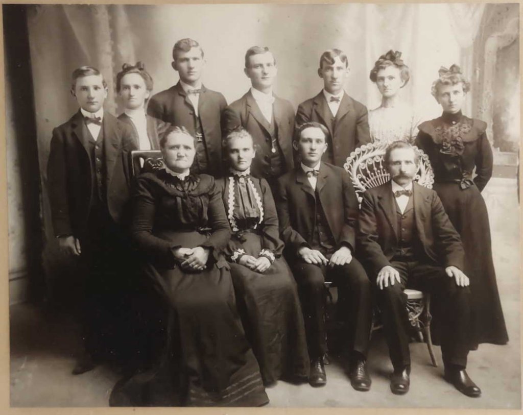 On November 9, 1874, Gustav married Barbara Habecker (1849-1915). Barbara arrived from Germany the same year as Gustav, but on a different ship. Soon after they got married, Gustav purchased forty acres of uncleared land located Greenfield township. He later added another forty acres. Gustav and Barbora had nine children: